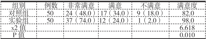 实验组患者的护理满意度高于对照组( P<0.05 )。见表1。
