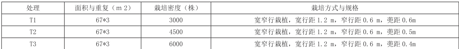 表1、祁东县2022 年不同栽培密度对祁东黄花菜品质的影响试验设计
