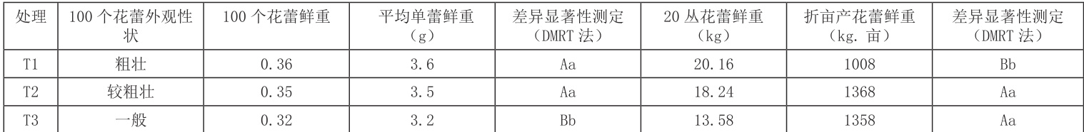 3.2 不同栽培方式对黄花菜产品的影响比较。详见下表4: