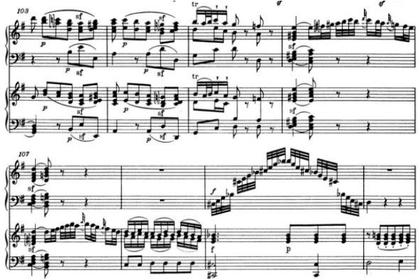 谱例 2 :再现部中的 sf(第 106-107 小节)
