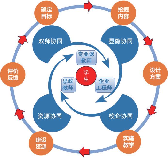 “三师四协同”课程思政创新模式打造了专业课教师、校内外思政教师、企业工程师“三师”协作的课程思政育人团队,构建了师资协同、显隐协同、校企协同、资源协同的“四协同”课程思政建设模式,将育人元素分层次、有计划、以润物细无声的方式融入进了教学全过程,有助于促进学生在知识、能力与品德等方面的一体化成长。