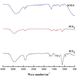 2.4 FT-IR 分析PCE1、PCE2 及 SCO-S 的红外光谱检测结果如图 3 所示。