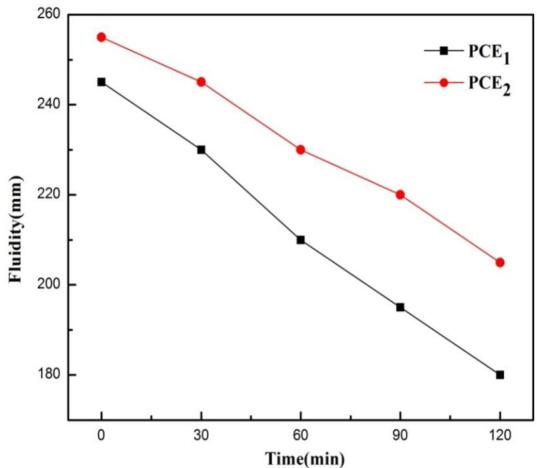 .5 Effect of PCE and PCE on the fluidity of cement past