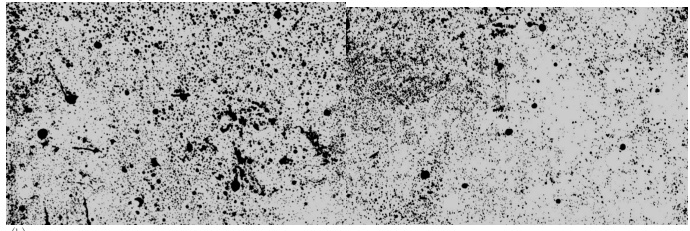 取硬化 3d 后脱模的混凝土试件,利用光学显微镜对混凝土切片进行测量。切片取自 150×150×150mm 混凝土试件的左右两个端面,厚度 10mm 左右。试件的待观测面先用黑色墨水均匀涂刷一遍,晾干后向孔洞撒白色的二氧化钛粉,使表面的孔洞更加突出 [3]。然后利用Image-Pro plus 软件对硬化混凝土的表面气孔做分析处理。