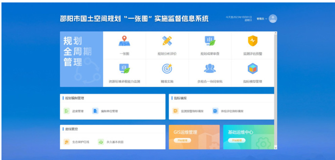 建系统。基于邵阳市国土空间基础信息平台,调用数据、应用、专题、接口等服务功能,构建邵阳市国土空间规划“一张图”实施监督信息系统,用于实现国土空间规划全周期管理服务。