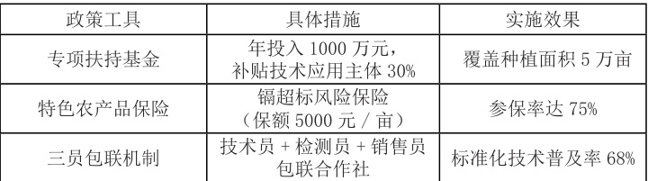 6.1.1 技术协同创新。“低积累品种 + 硒调控 + 水分管理”技术包使百合达标率从 81.3% 提升至 98.6% 。多技术集成实现了对镉污染的全方位控制,形成“源头阻断- 过程调控- 末端治理”的完整技术链。6.1.2 全链条价值提升。加工环节梯度降镉使终端产品合格率提高至 99.2%, 。从种植到加工的系统防控显著提升了产品质量安全水平,同时通过品牌建设使产品溢价率提高 15%-20% 。
