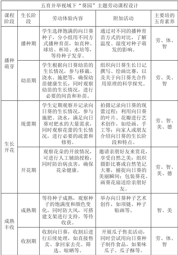 五育并举视域下“葵园”劳动课程的设计与实施