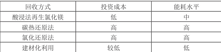 1、酸浸法再生氯化镁具有最佳技术经济性,推荐作为主回收路线。