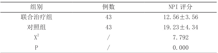 (3)比较两组神经精神症状:采用神经精神量表(NPI)评估患者神经精神症状,涵盖12 项核心症状(如妄想、幻觉、抑郁等)。