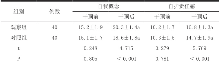 观察组干预后自我护理能力评分高于对照组 (P<0.05). 。详见表 1。