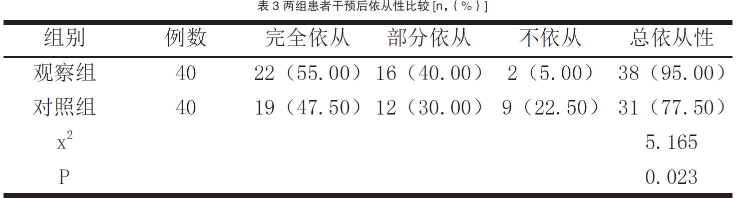 2.3 两组患者干预后依从性比较