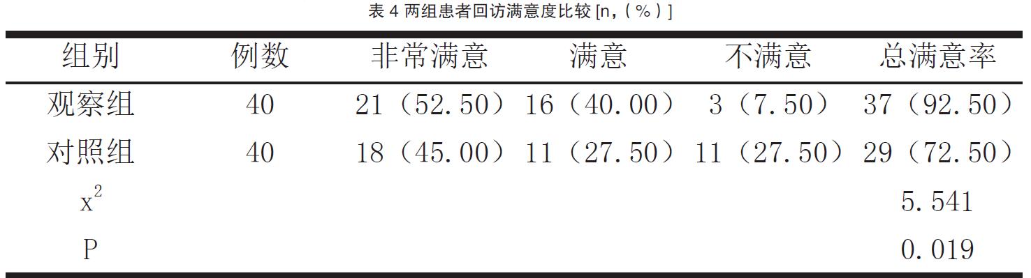 2.4 两组患者回访满意度比较