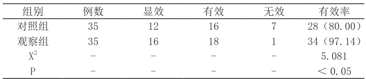 研究时间定为 2024 年 1 月—12 月,患者总数为 70 例,分组方法为随机数字表法,组内患者数量分别是35 例。对照组内,患者男女数量分别是17 例、18 例,年龄在45-87 岁之间,平均( 62.12±1.23 )岁;观察组内包含男性18 例,女性17 例,年龄最小 44 岁,最大 88 岁,平均年龄是( 62.11±1.16 )岁。以上所有患者的基本资料之间对比后,结果提示无统计学意义( P>0.05 )。