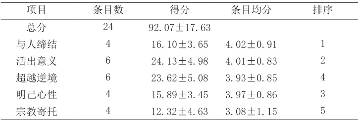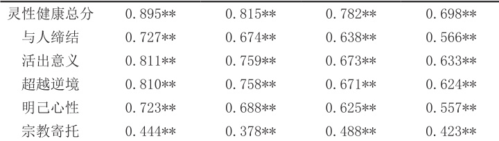 2.3 “3+X”高职护生灵性健康得分情况 见表 2。