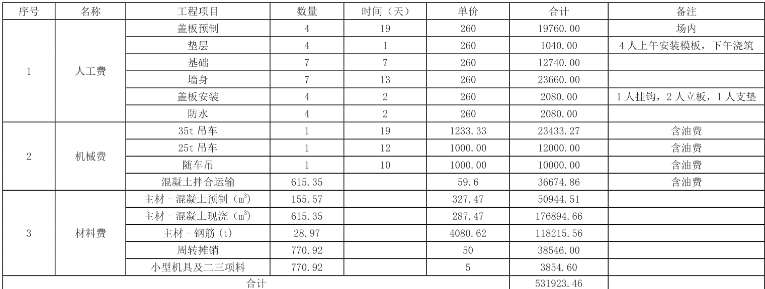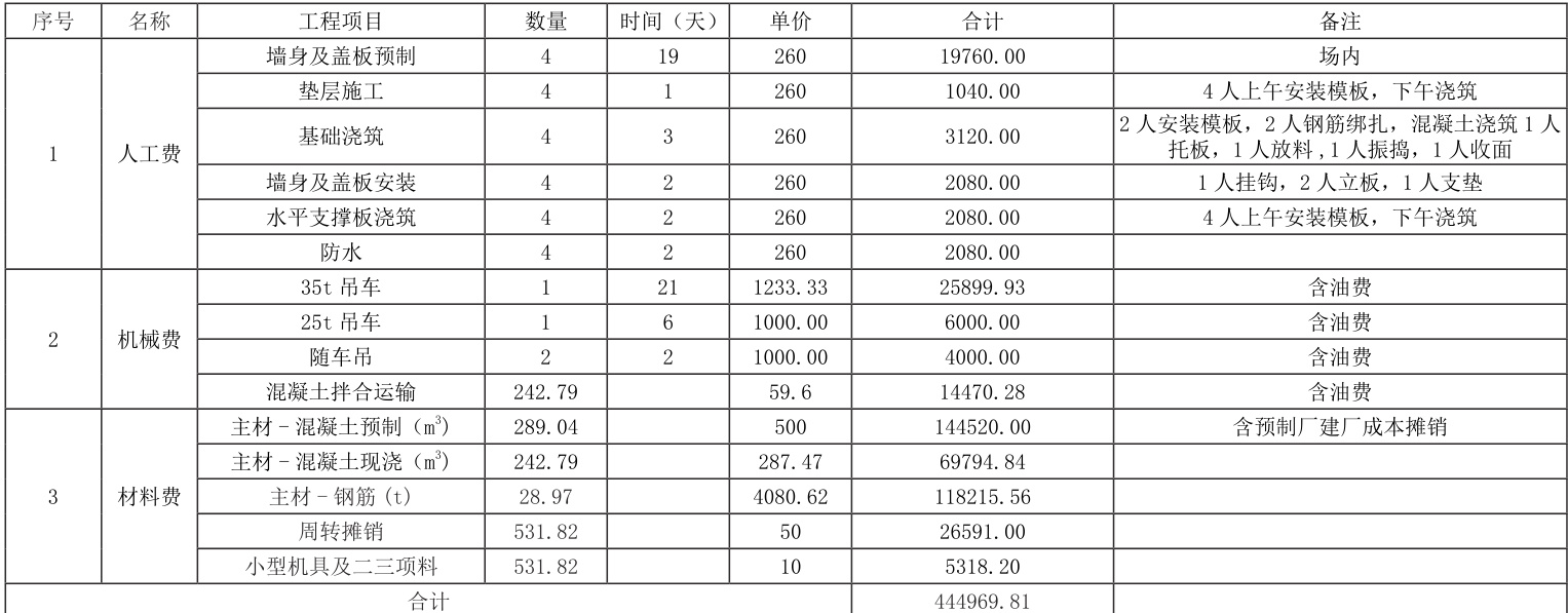 1)预制装配式涵洞施工成本分析: