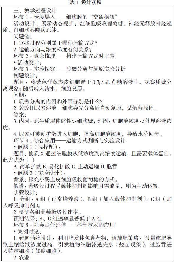 基于存在问题,继续对 seepseek 追加要求:质壁分离和复原实验问题设计体现层次性;例题体现高考难度;物质出入细胞方式的判断和实验设计例题,例题高考难度,具有递进性。修改并整理后的部分过程如表2