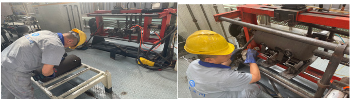 重载车辆厂、段、临修双室风缸检修、试验,双室风缸缸堵分解后需要进行检查、吹尘,检查状态良好后更换新品缸堵,放置试验设备上,在风缸连接处充风至风压 750kpa 左右,通过长充风检漏剂涂抹风缸焊接部、缸堵的方式判断是否漏泄,同时检查加速缓解缸口是否漏泄,判断风缸内部串风情况。