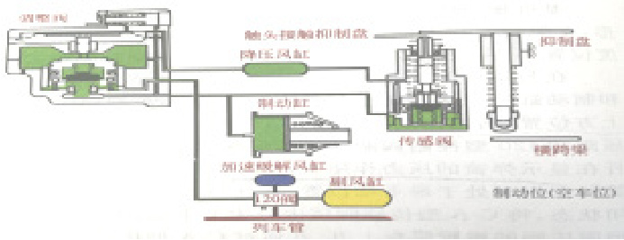 车辆充风缓解后,副风缸、加速缓解风缸均为定压,在制动过程中,从副风缸的压力空气 - 制动缸 - 限压阀 - 传感阀下腔,随着制动缸空气压力的增加,传感阀下腔空气压力顶开夹芯阀时,便向降压风缸充气,由于加缓风缸压力为定压( 500-600kpa )大于制动过程后流入传感阀下腔的空气压力,若加速缓解风缸与降压风缸相连接的内部串风,此时需要更大的传感阀下腔空气压力来顶开夹芯阀,因此制动缸压力比正常值偏大,限压阀可能翻牌。