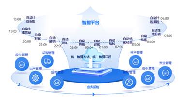 又例如,在业财数据方面,可以基于人工智能技术的业财系统进行核对,确保所有业务数据经过会计平台入账规则均已入账,对于未入账数据系统自动预警,并在对账过程中,根据入账规则中的维度设定对账规则实现系统自动对账。具体而言,结合 RPA(机器人流程自动化)、AI(人工智能)等技术,基于预设规则实现系统自动对账,对未入账数据实时预警,大幅提升对账效率和准确性;运用 RPA 技术实现计提折旧、凭证生成、损益结转等常规核算工作的自动化处理,将会计人员从重复性工作中解放出来;对下属单位的核算进度进行动态跟踪,确保集团层面核算工作的及时性和一致性。在少量场景需手工作业情况下,通过设置信息的映射关系、配置样式模板来减少信息的重复输入,实现会计核算质量提升。如图 2 所示。