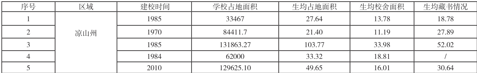 1. 基础设施建设滞后,不能满足生源需求。一方面学校用地与校舍,面积达标者少。根据教育部 2010 年修订的《中等职业学校设置标准》核定生均占地面积为 33m2 。生均校舍面积为 20m2 ,调查中有部分学校还不达标。( 具体见表1)。另一方面图书与专业实训基地不足。《中等职业学校设置标准》中规定“要有与所设专业相适应的校内实训基地和相对稳定的校外实习基地”。调查发现,普遍存在专业实训场地短缺,设施设备落后现象。如:N 技术学校因位于邛海景区,建设受到严格限制,不能新建校舍,汽车运用与维修、机电、电器等专业学生实训室缺乏。
