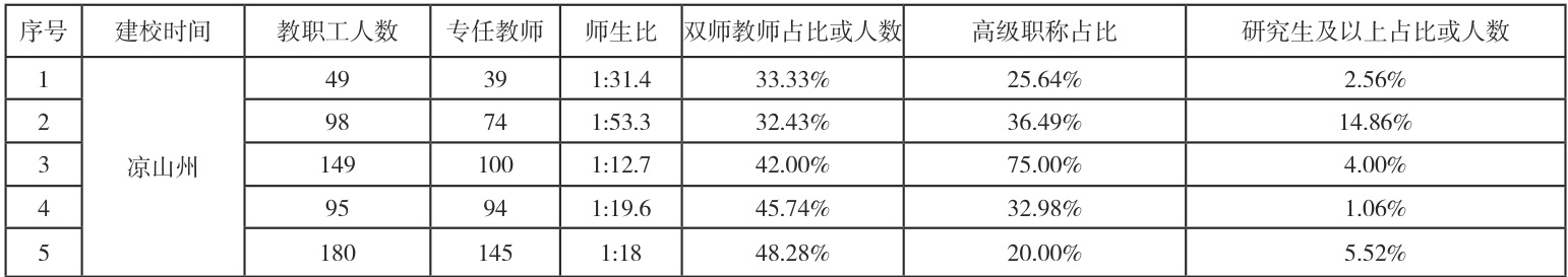 表 2 部分中职学校师资情况