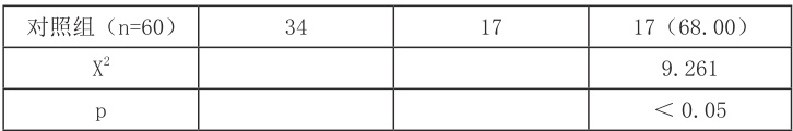 在经过治疗的患者康复后一个月内,全部患者都接受了电话访问,得出,观察组总有效率 9 6 . 0 0 % ,对照组总有效率 6 8 . 0 0 % ,观察组的总有效率明显高于对照组,有显著性差异