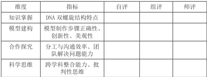 表1 DNA 的结构教学过程评价量表