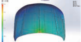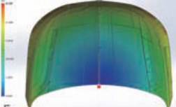 现阶段新能源汽车覆盖件大多为钣金 金覆盖件,减轻新能源汽车的重量。为保证 PDCPD 引擎盖的质量 模拟分析。先对引擎盖进行充模分析,设置好 PDCPD 方向,看在 PDCPD 注射成型的过程中有无接缝和气泡 品形状,确保注射产品的质量。除此之外对冷却 / 加热水道 带走模具成型时产生的热量。让模具结构、模具温度等各项参数都能 使产品质量满足要求。