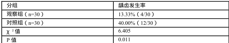 2.1 对比两组患儿的龋齿发生率