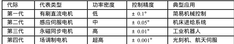 表1:伺服电机技术代际演进特征对比