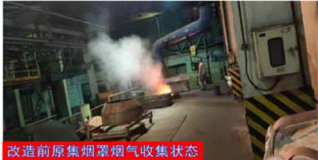 作为收尘系统改造和无组织排放治理的一次成功尝试,项目新思路进一步延伸到浇铸过程烟气收集,由于浇铸工位设备也处于移动、运行状态,适合该项目设计思路,目前已完成浇铸工位烟气收集管路和集烟罩安装,烟气收集效果提升明显,现场环境得到明显改善,下一步将该思路应用于出铁水工序中,确保从化铁、保温、出铁水再到完成浇铸整改过程的烟气有效收集。
