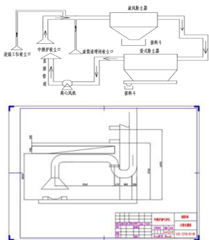 (4)现有中频炉炉面集烟罩及收尘管道整体更换,炉面收尘支管设计为φ 325*5mm 螺旋管,厂房顶部收尘总管设计为φ 600*5mm 螺旋管,总管与原中频炉烟气净化设备(旋风除尘器)连接,达到管路更换及烟气收集目的。