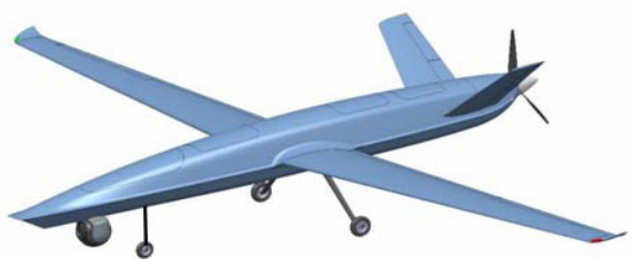 机翼为中单翼、梯形翼,尾翼采用“ V” 型构型;机身为细长型流线型机体,机身下部布置可收放前三点式起落架;动力系统布置在机身尾部。机身前部采用大舱盖设计,方便任务载荷在机身前部的安装以及重心配平,发动机后置为机身前方提供了良好的前向视野。机身后方背部布置了发动机冷却气流进气口,为发动机散热器提供冷却气流。