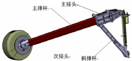 主起落架结构主要由主撑杆(复合材料结构)、斜撑杆(高强度钢结构)、主接头(高强度钢结构)、次接头(高强度钢结构)等组成。主起落架作为飞机关键组件(部件)研制中采用新的设计理念和方法,本飞机采用钢结构与高强度复合材料组合式的起落架形式,起落架重量减少 50% 以上。