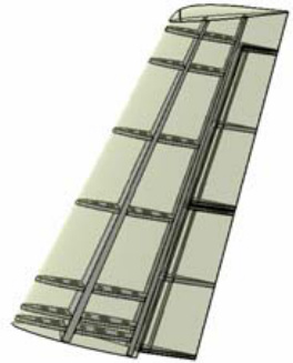 如图 7 所示,尾翼结构由 2 根梁、若干翼肋、上下蒙皮等组成,均为复合材料结构。与机身主承力框通过对接接头使用螺栓连接,对接接头为高强度铝合金结构。