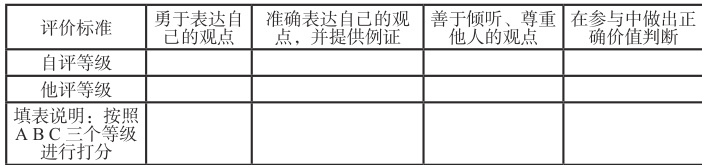 《普通高中思想政治课程标准》对教学评价的建议是“评价要将过程性评价与终结性评价相结合,着重评估学生解决情境化问题的过程和结果,反映学生所表现出来的思想政治学科核心素养发展水平。” 5 由此,依据不同的学习活动形式,确定本课的学习效果评估量表如下: