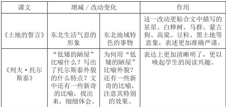 除此之外,自读课文的旁批,也是这套新教材的创新。温儒敏教授认为,现在的旁批有些陈旧而且死板,大多数都类似写作方法分析引导,这要改一改,往阅读兴味的焕发这方面改。比如《土地的誓言》以及《列夫·托尔斯泰》写外貌那一节的旁批,温儒敏教授就做了这样的改动: