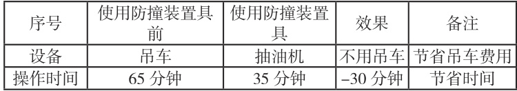 在油田开采过程中,将该防撞装置应用于皮带抽油机提杆上,不使用吊车的情况下,利用抽油机完成提杆、对防冲距开抽,缩短了操作时间;