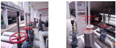 铁路油品接卸由于阀门多,接卸的油品种类又多,由于铁路接卸油品的特殊性和接卸不同油品的阀门启闭工艺的复杂性,往往会因为员工阀门误操作或阀门关闭不严导致混油事故发生。发生混油事故,虽然对于油品数量上没有变化,可是对于油品质量上却千差万别。混油事故对于油品质量而言就是灭顶之灾。为了避免混油事故,在现有铁路接卸的硬件基础上,在原有关键阀门上联系阀门厂家定制专门的安装环、安装筒、无线阀位智能终端,通过设置无线阀位智能终端收集阀门启闭信号,再通过网关将阀门启闭信号通过网络传输到中控室,信号直接接入原油的阀控系统,形成一整套直观可见的铁路接卸阀门限位装置可视化系统。为了让阀门启闭更加直观化,还特意再安装筒上制作了可视化升降标识环。通过铁路接卸阀门限位装置可视化系统的投用和可视化升降标识环的投入使用,铁路油品接卸阀门开错和关不严的风险得到控制,铁路油品接卸物的不安全状态得到了及时有效的提升。