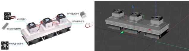 三核制冷系统采用三个 tec-12706 半导体制冷片,制冷片制冷面将温度传至65*45mm 铝散热片,再借助 4010 风扇风冷实现冰箱内部制冷;同时,用隔热棉分割冷热面,防止散热面影响制冷效果;此外,通过 9025 风扇对 95*300mm 铝散热片进行风冷散热[5]。
