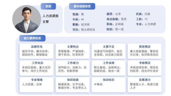 在现代组织管理中,干部的选拔、任用、培养和考核是一个复杂而关键的系统工程,组织的高效运行和长远发展对干部管理提出了更高的需求。传统的干部评价方式往往依赖于主观经验、单一指标或有限的材料数据,难以深入挖掘干部的潜在特质和行为模式,不利于客观全面、准确及时地反映干部的真实情况、发展潜力以及在动态工作环境中的变化。随着人工智能技术的迅速发展,如深度学习、自然语言处理等技术,为干部全息画像构建提供了全新的思路和方法。人工智能技术能够处理海量数据、进行深度分析和自动学习,提取出关键特征和标签,为构建更加准确、全面和动态的干部全息画像创造了条件,为干部选任、考核评价、培养发展提供可靠的支撑和科学的依据。