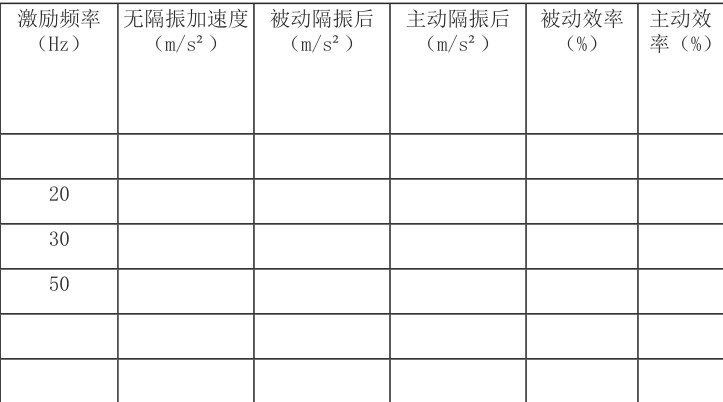 图4-1 隔振实验平台表4-1 不同频率下振动响应数据