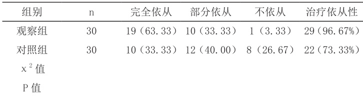 表2治疗依从性对比[n(%)]