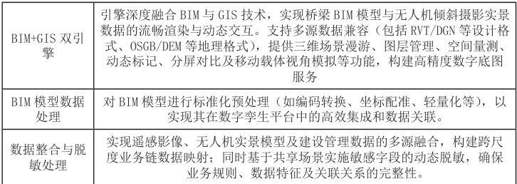 (6)平台层:主要包括BIM+GIS 双引擎、BIM 模型数据处理和数据整合与脱敏处理三个部分。能将复杂的三维空间数据得以直观呈现,还提供了强大的数据存储能力,能够长期保存并管理海量的历史记录。