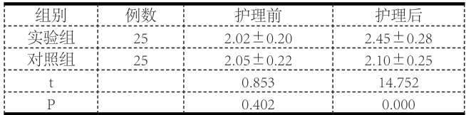 干预后实验组 FEV1 水平显著提升,且高于对照组,两组差异有统计学意义( P<0.05 ),见表1。