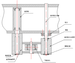 2)起落套旋转动作的完成,由滑动摩擦状态,优化为使用轴承的滚动摩擦状态,基本消除了磨损带来的间隙变化,同样提高了活套运行的稳定性。
