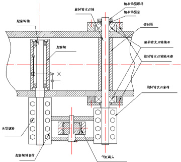 4)旋转臂支点套筒亦改为夹壳联轴形式,结构设计同起套辊轴套筒。