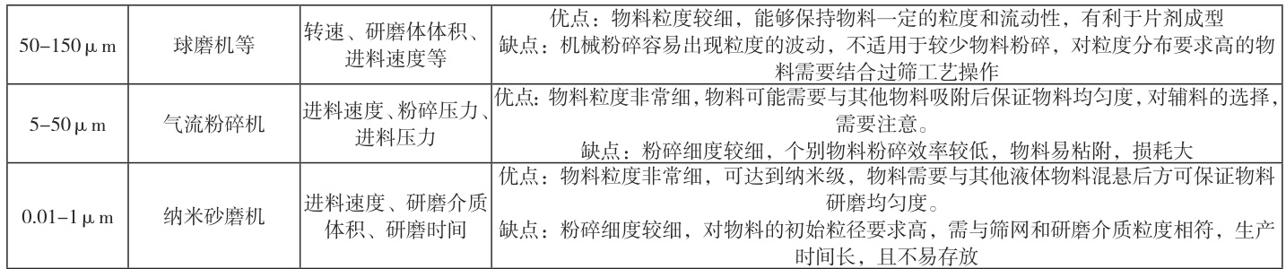粒度较大的物料,需要进行粉碎处理,使其粒度达到生产工艺的要求。主要的粉碎方式有机械粉碎、气流粉碎和使用介质粉碎等。不同的粉碎方式可以将物料粒径处理至 0.01~400μm