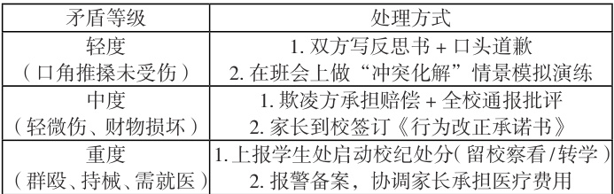 启动“班主任—学生处—校领导”三级联动机制,确保事件及时处理。
