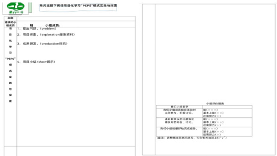 单元主题下的小学中高年级的英语项目化学习“PEPS”模式实践与探究